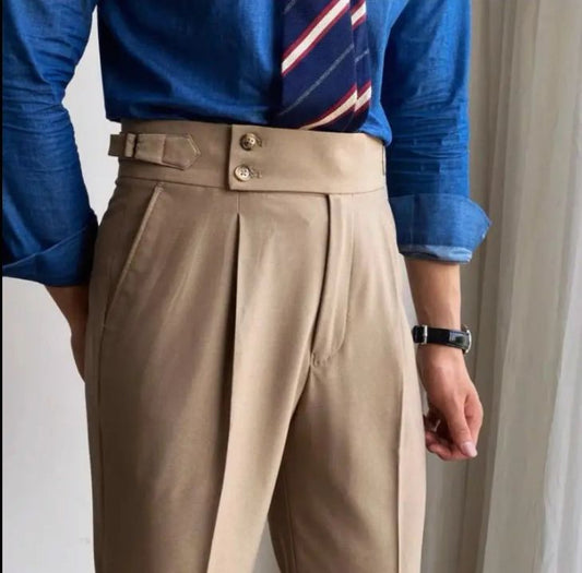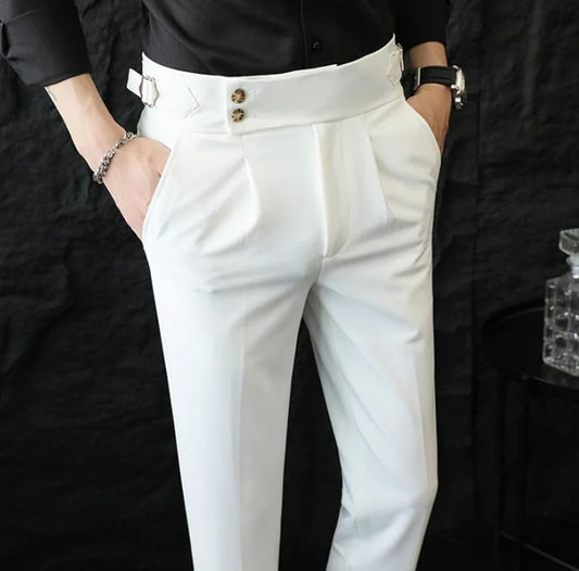PexFord - High-waisted, straight-leg dress pants in a retro style.