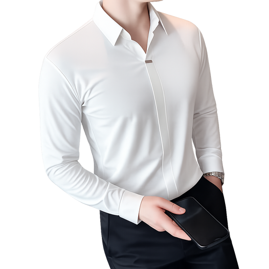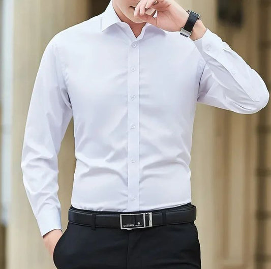 PexFord - Men's plus size long-sleeved slim-fit dress shirt.