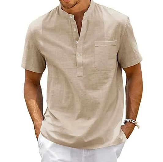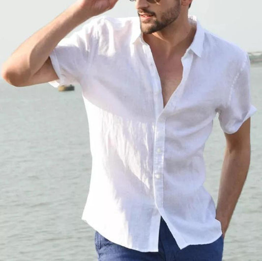 PexFord - Men's short-sleeved shirt, 100% cotton and linen, oversized style.