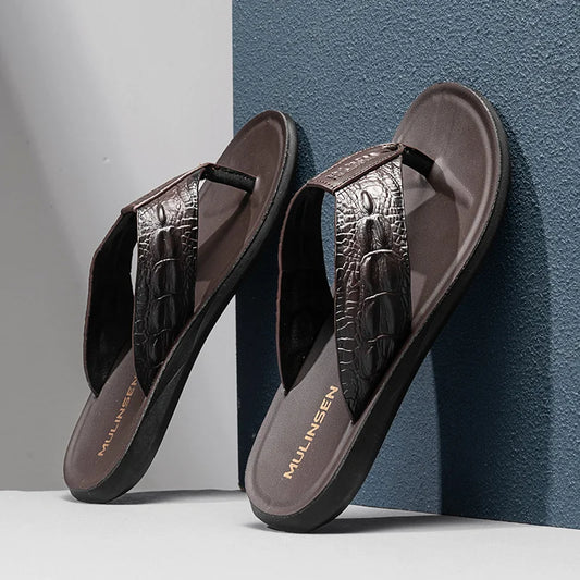 PexFord - Men's casual leather flip-flops with a non-slip design.