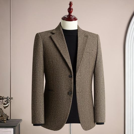 Autumn Winter Thicken Warm 50% Woolen Men Suit Jacket Retro Style Fashion Business Slim Fit Casual Wedding Groom Coats Tailcoat