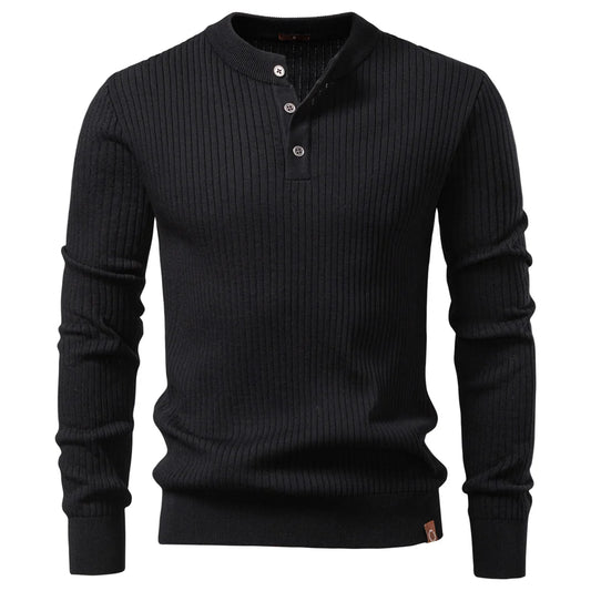PexFord - Men's long-sleeved T-shirt with ribbed Henry collar.
