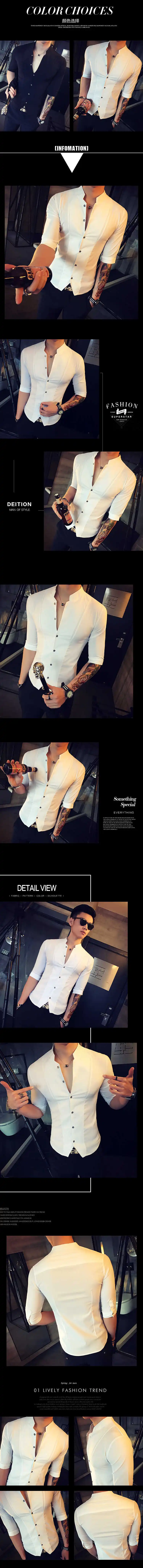2024 Summer Fashion Stand Collar Chinese Style Shirt Men Solid Color Slim Fit Half Sleeve Dress Shirts Designer Club Prom Shirt